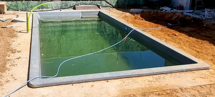A casa que construimos foi bem pequena (pra sair do aluguel mesmo) e ficou pronta em dois meses, e nisso a água da psina já parecia a água de um pântano porque o sistema de bomba dela estava desligado e ela não recebia oxigenação.